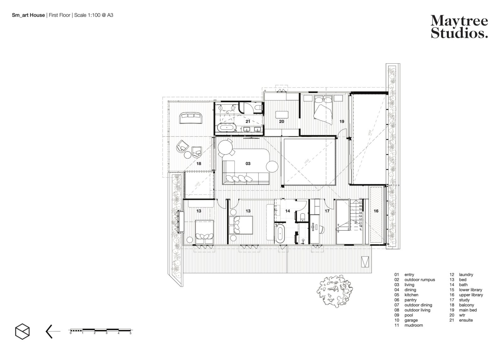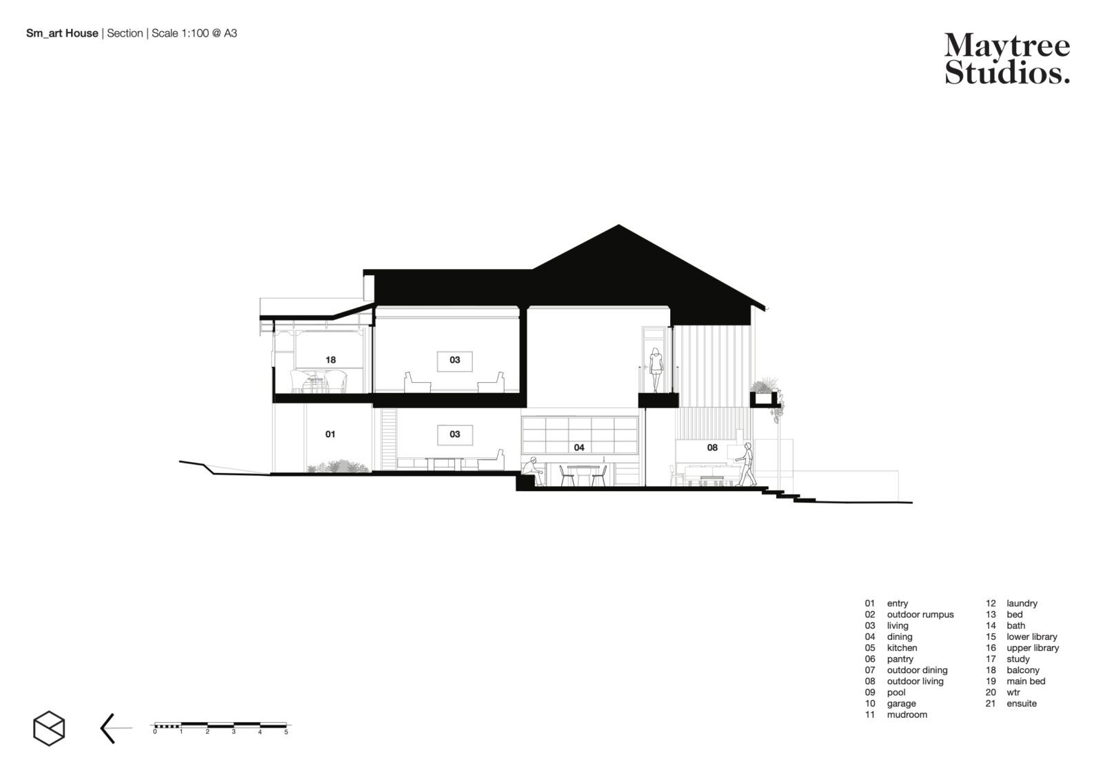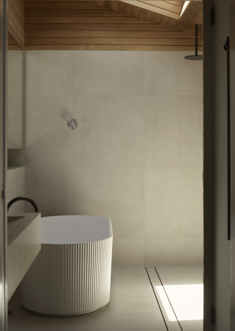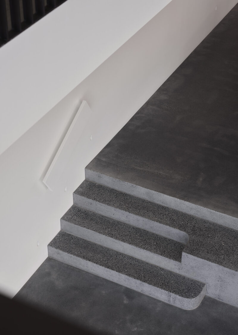 The traditional cladding was retained and the roof restored in zincalume, while new additions are crisp and modern in fibre cement with fine battens. Bold finishes add depth and texture while a dramatic central void brings light and air through the home, connecting bedrooms above with living spaces below, anchored by a sculptural concrete stair. The result is a generous yet intimate home designed for longevity and family life.