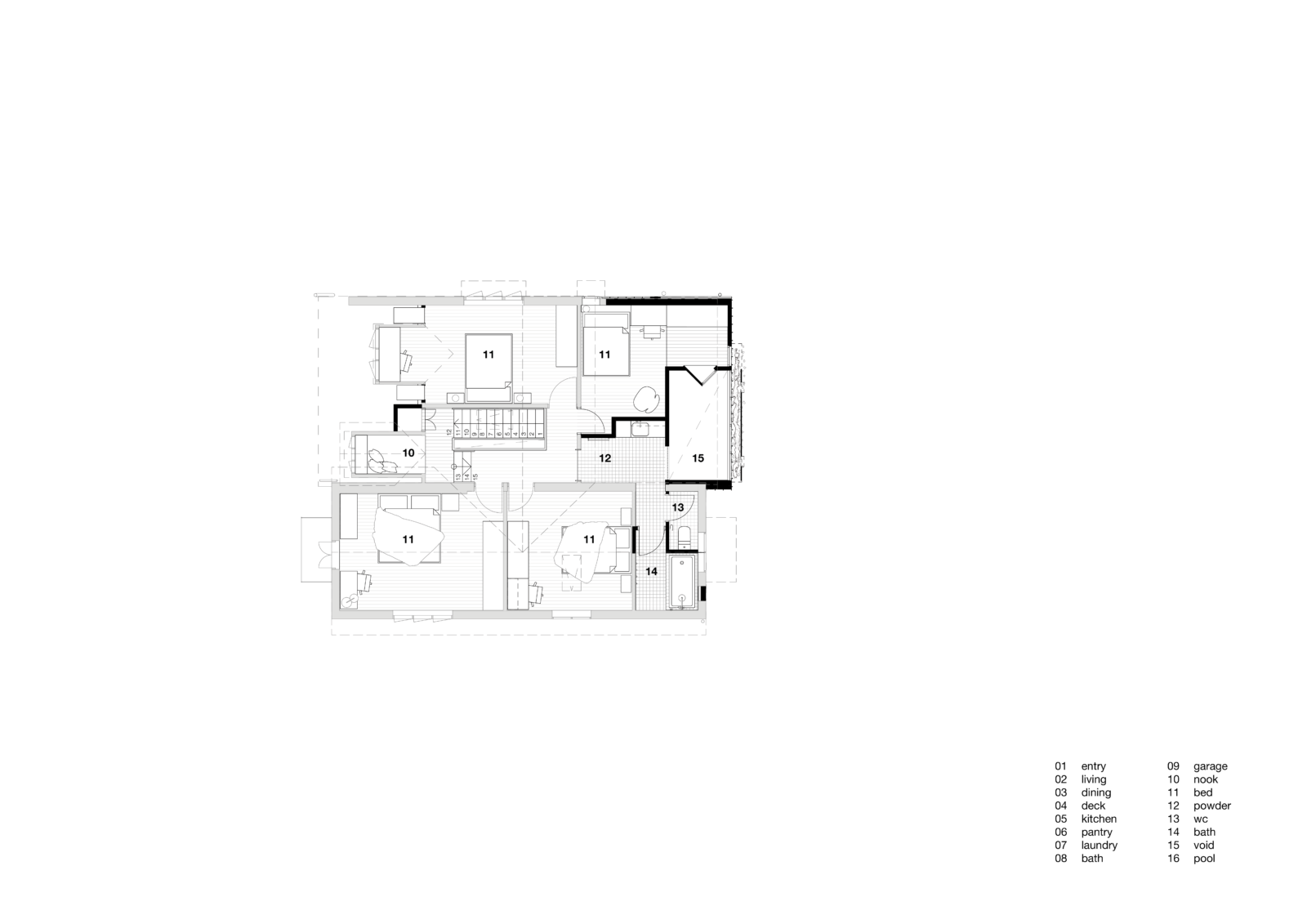 Rather than adopting the typical Queensland strategy of expansive outdoor rooms, the design works within the existing brick envelope. Removing the rear A-frame roof enabled insertion of a contemporary volume that resolves three issues at once: a cramped attic becomes a generous fourth bedroom, bathroom access is no longer through another room, and a double-height void draws daylight deep into the once-dark plan while reconnecting both levels to the yard.